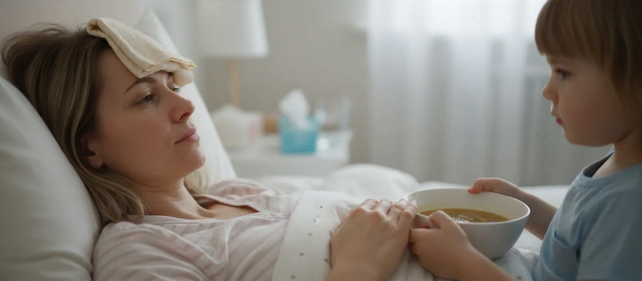 Это комплекс проявлений, включающий боль или першение в горле, насморк или заложенность носа, кашель, чихание, а также повышение температуры, головную боль, общую слабость и ломоту в теле.